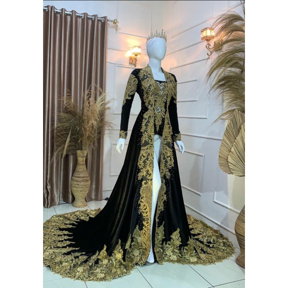 Kutubaru kebaya pengantin bludru jawa modern payet ekor baju pernikahan baju pengantin .